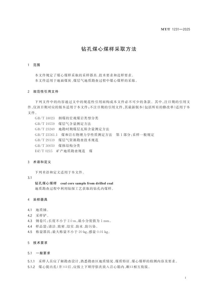 MT/T 1231-2025 钻孔煤心煤样采取方法