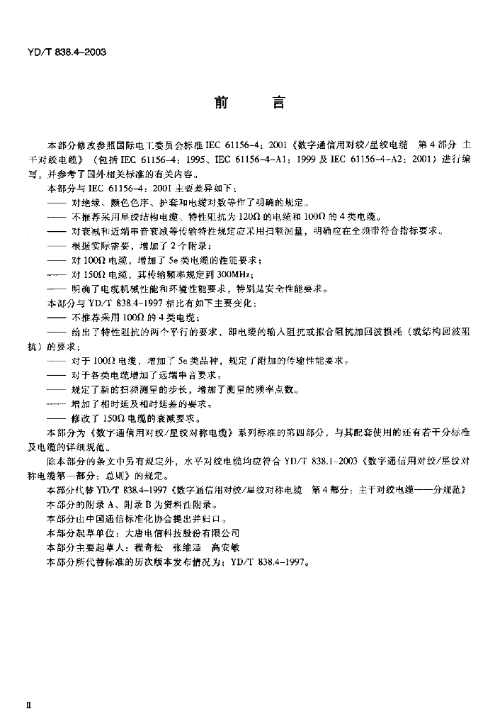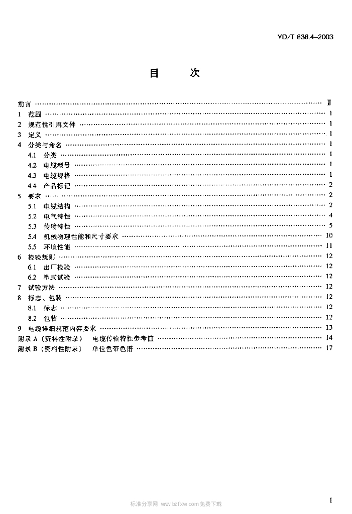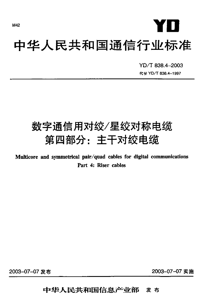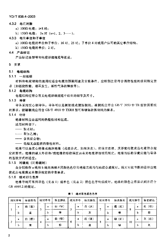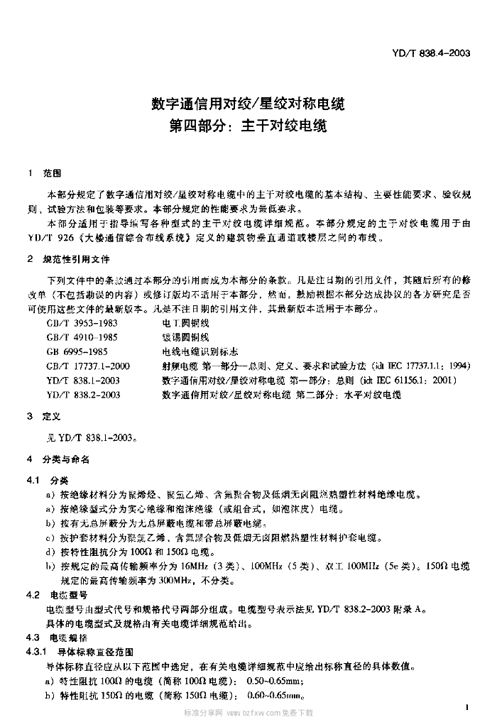 YD/T 838.4-2003 数字通信用对绞/星绞对称电缆 第四部分:主干对绞电缆