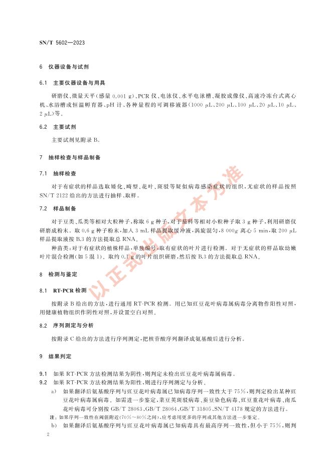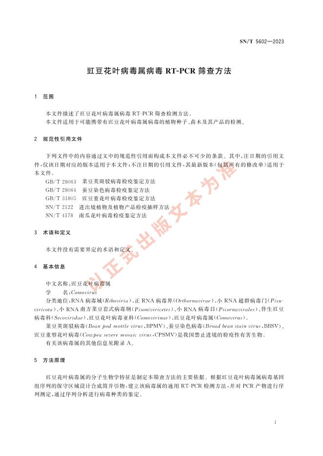 SN/T 5602-2023 豇豆花叶病毒属病毒RT-PCR筛查方法