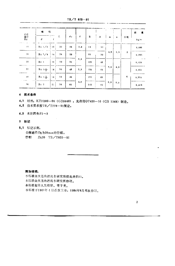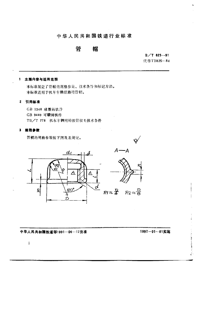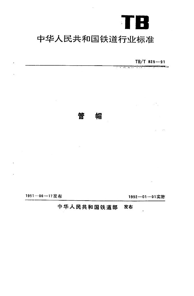 TB/T 825-1991 管帽