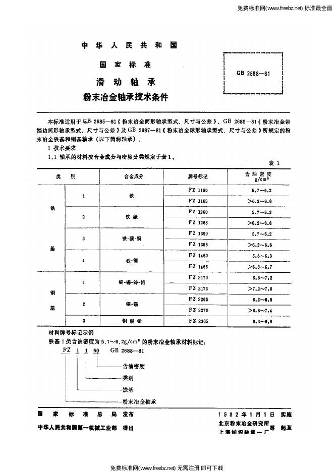 GB/T 2688-1981 滑动轴承 粉末冶金轴承技术条件