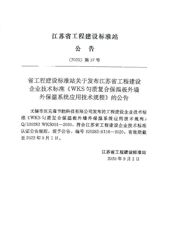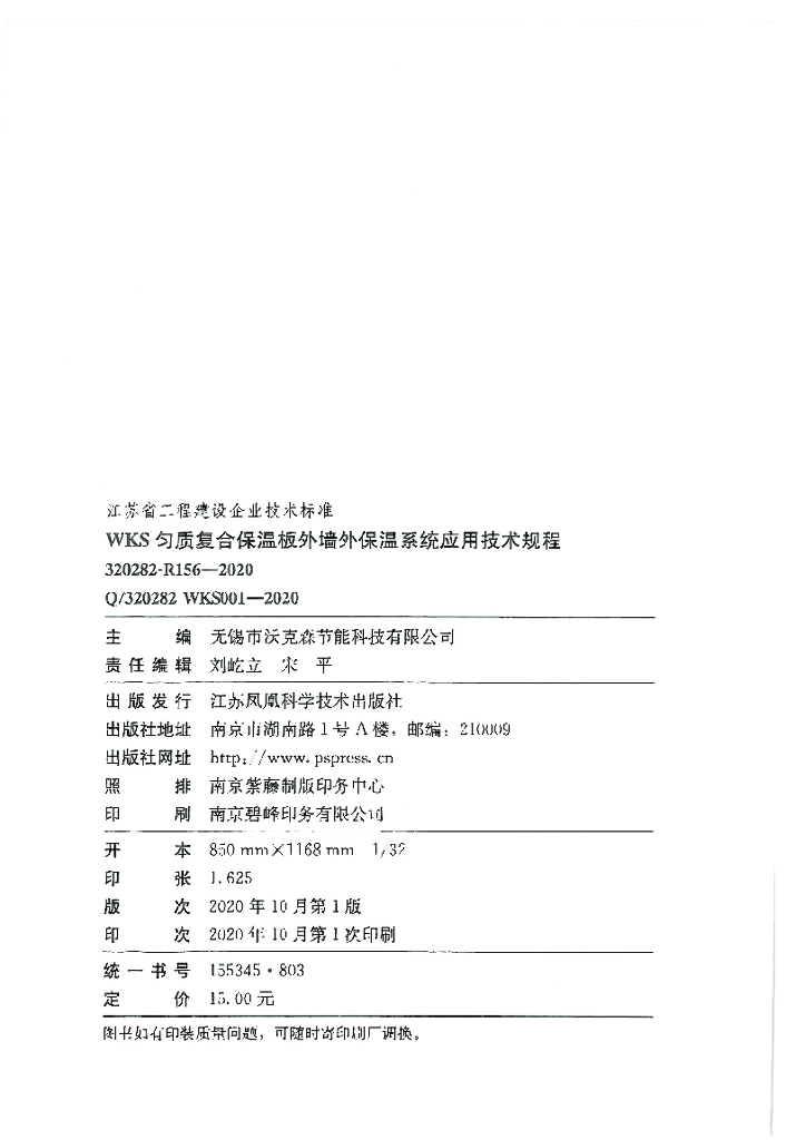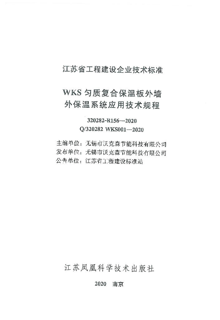 Q/320282 WKS001-2020 WKS匀质复合保温板外墙外保温系统应用技术规程