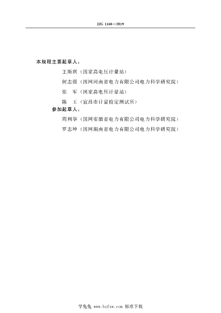 王斯琪(国家高电压计量站)、何志强(国网河南省电力有限公司电力科学研究院)、张军(国家高电压计量站)、陈玉(宜昌市计量检定测试所)、周利华(国网安徽省电力有限公司电力科学研究院)、罗志坤(国网湖南省电力有限公司电力科学研究院)