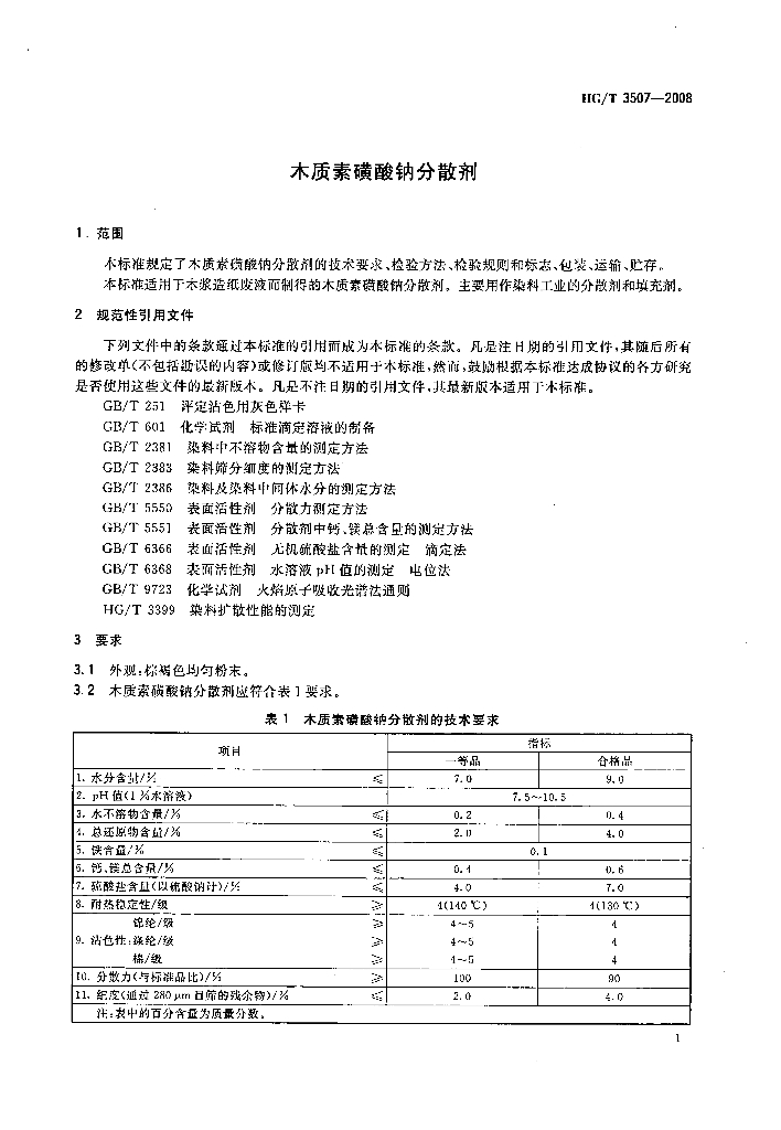 HG/T 3507-2008 木质素磺酸钠分散剂
