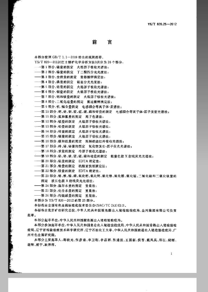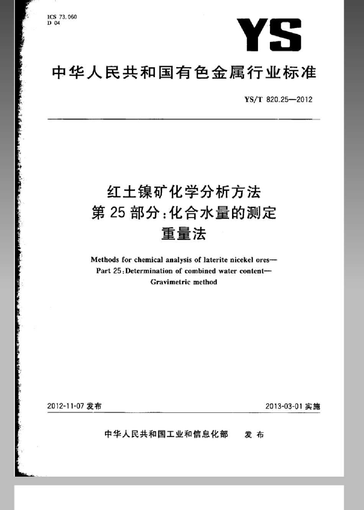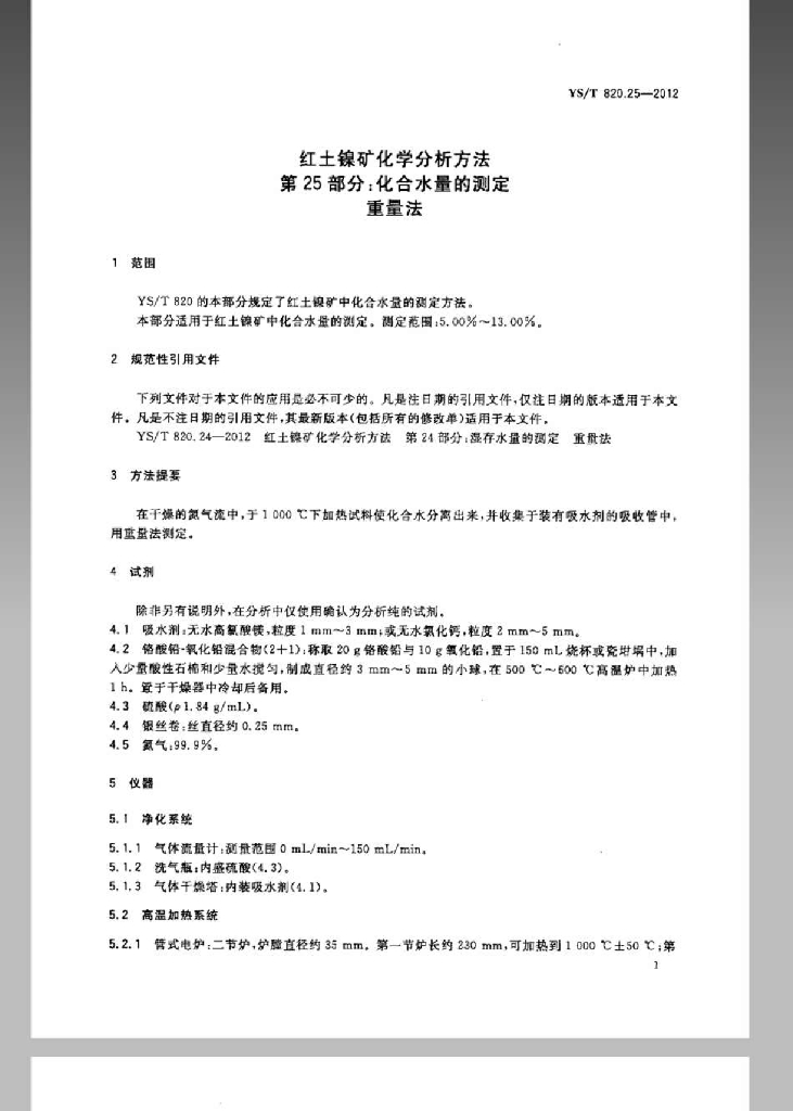 YS/T 820.25-2012 红土镍矿化学分析方法 第25部分:化合水量的测定 重量法