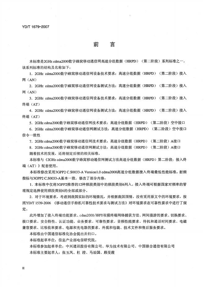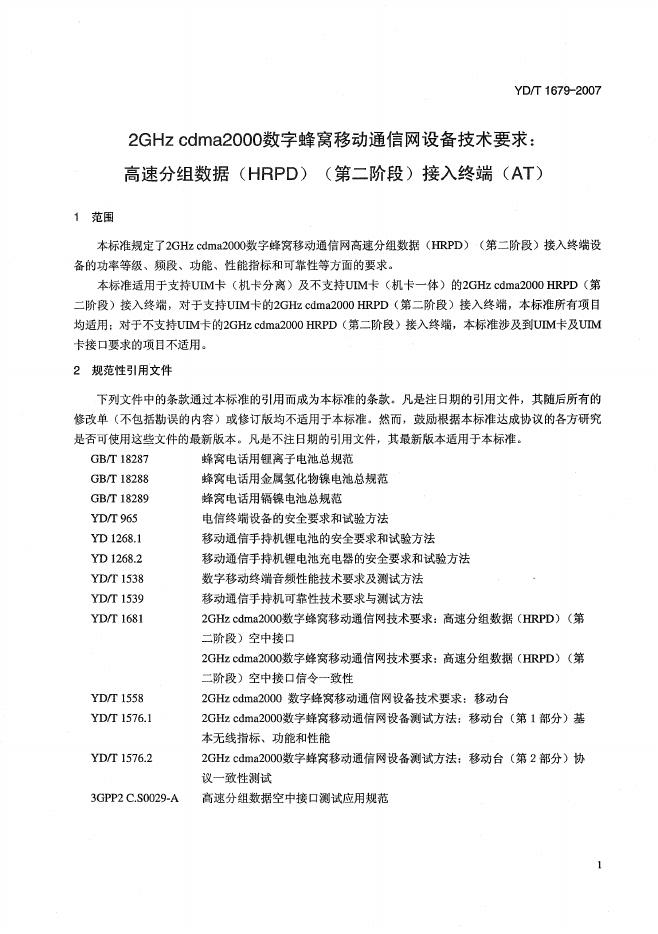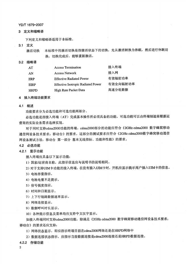 YD/T 1679-2007 2GHz cdma2000数字蜂窝移动通信网设备技术要求:高速分组数据(HRPD)(第二阶段)接入终端(AT)