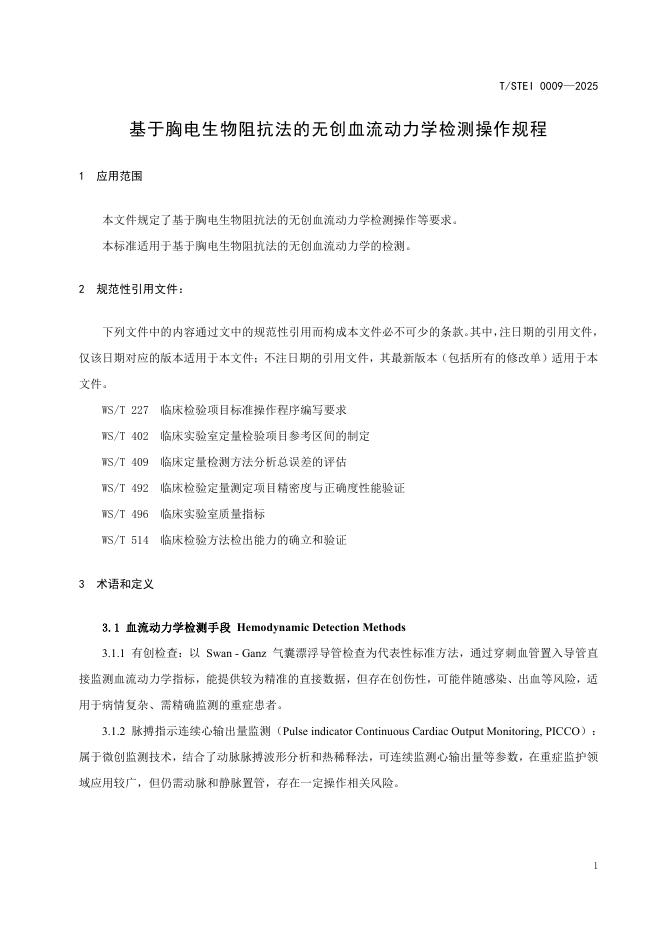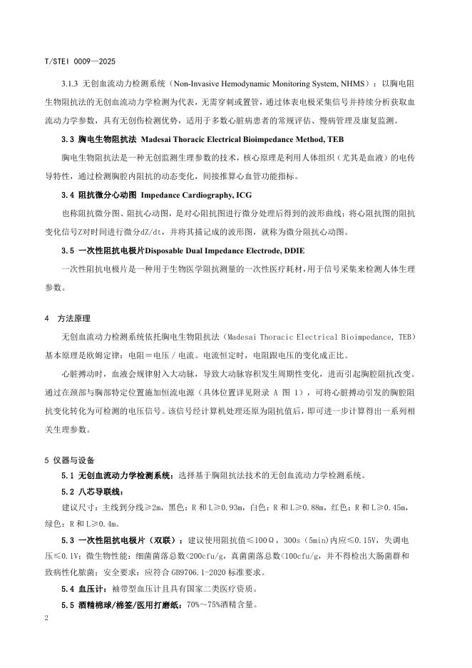 T/STEI 0009-2025 基于胸电生物阻抗法的无创血流动力学检测系统标准化操作规程