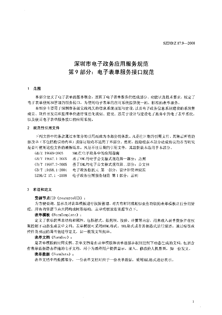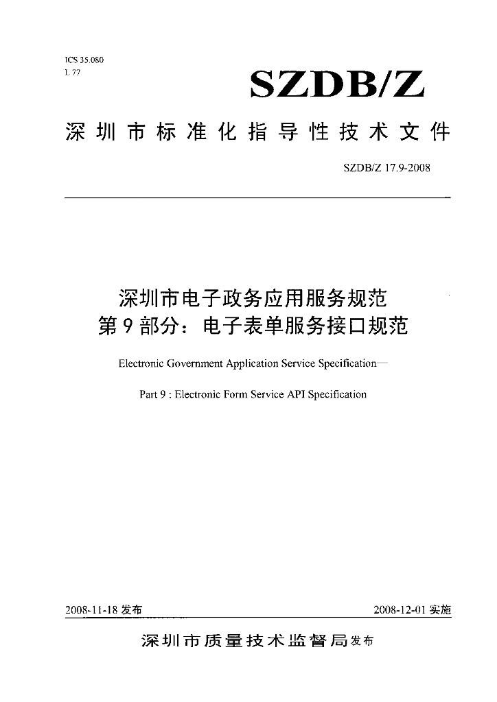 SZDB/Z 17.9-2008 深圳市电子政务应用服务规范 第9部分:电子表单服务接口规范