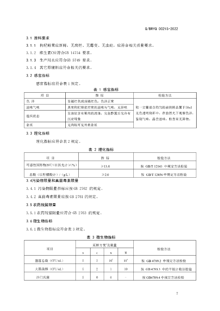 Q/BRYQ 0021S-2022 鲜枸杞原浆