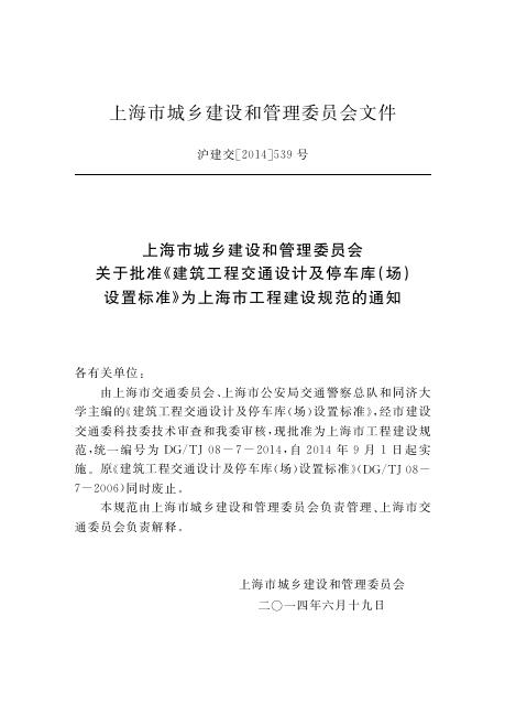 DG/TJ 08-7-2014 建筑工程交通设计及停车库(场)设置标准