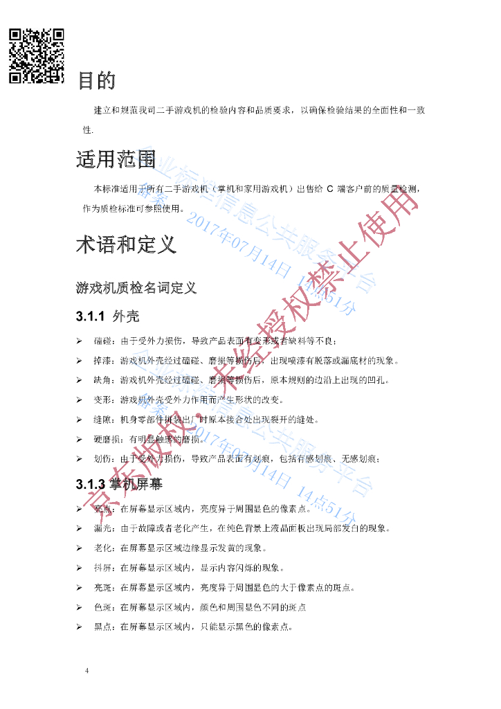 Q/DXJD3CES 029-2017 二手游戏机分级标准