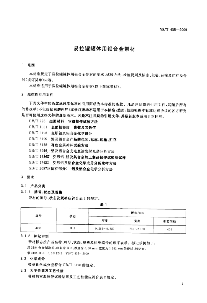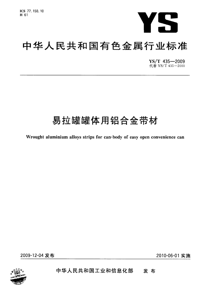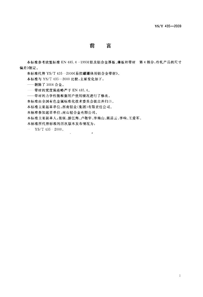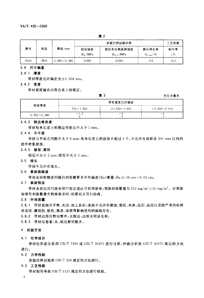 YS/T 435-2009 易拉罐罐体用铝合金带材