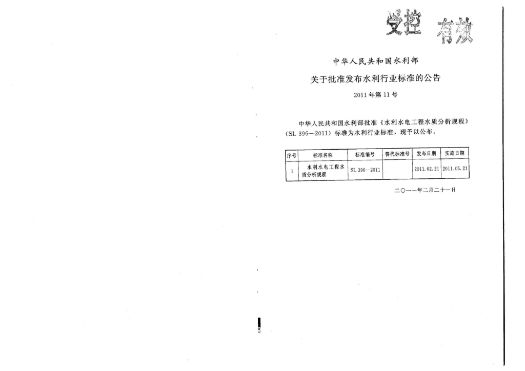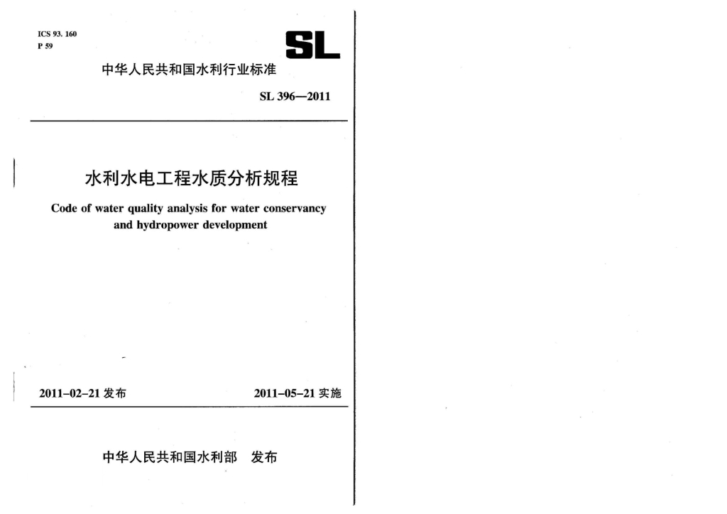 SL 396-2011 水利水电工程水质分析规程