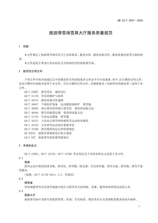 DB23/T 3937-2025 旅游滑雪场雪具大厅服务质量规范