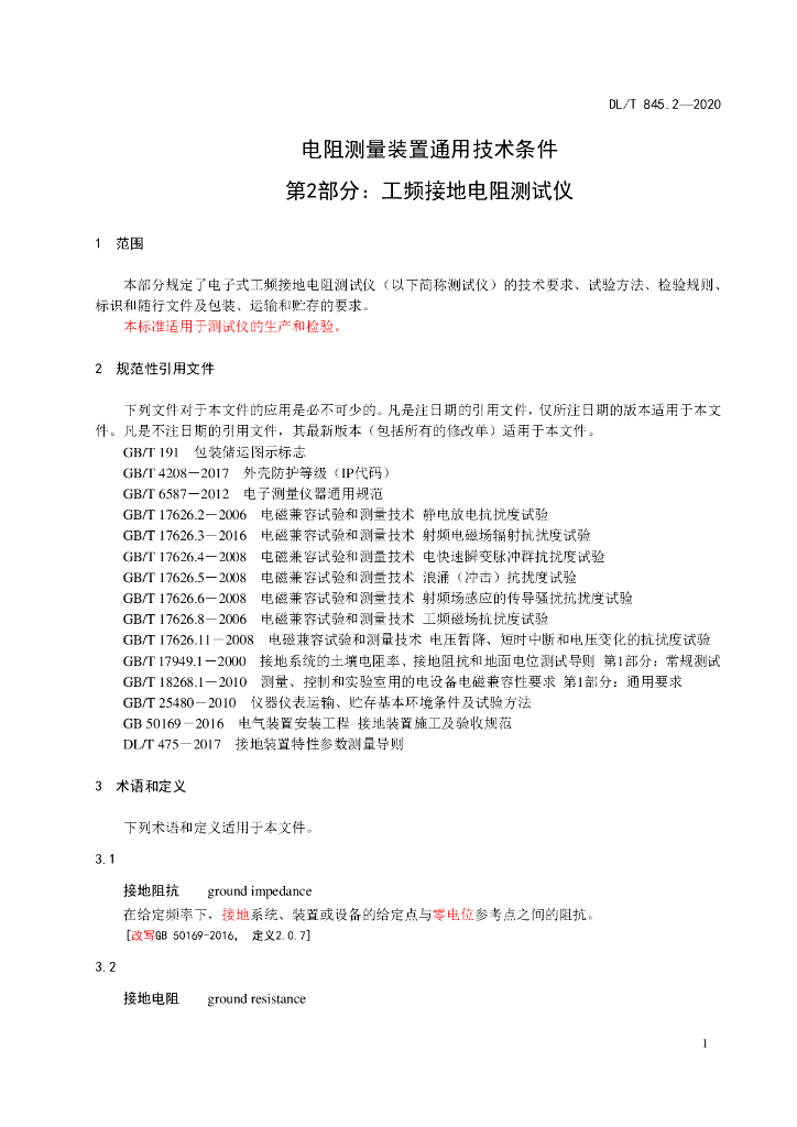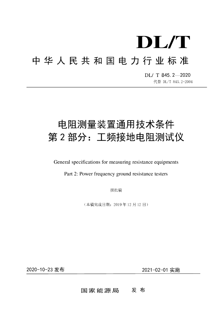 DL/T 845.2-2020 电阻测量装置通用技术条件 第2部分:工频接地电阻测试仪