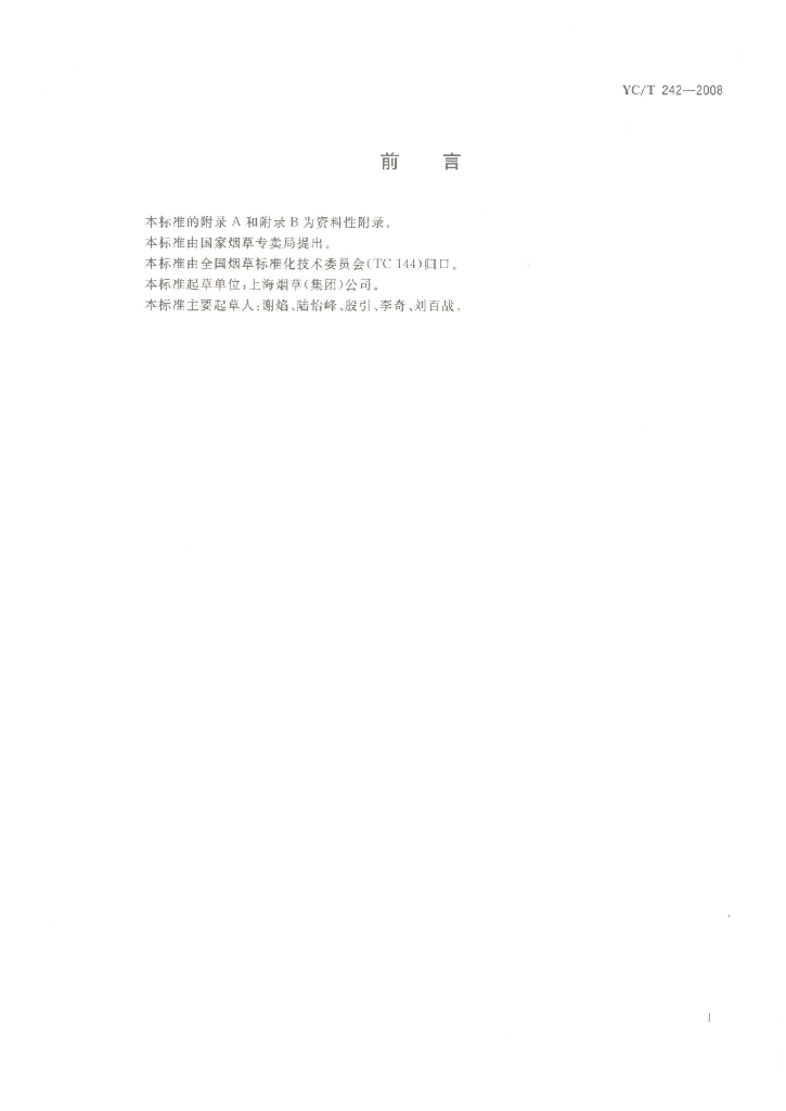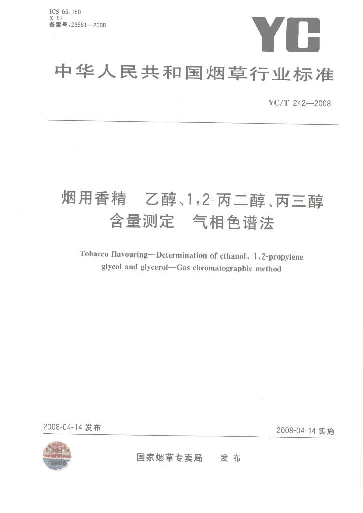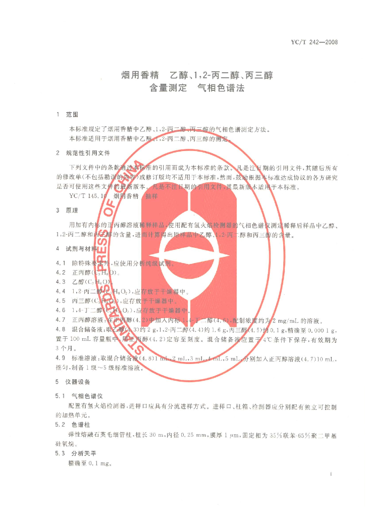 YC/T 242-2008 烟用香精 乙醇、1 2-丙二醇、丙三醇含量测定 气相色谱法