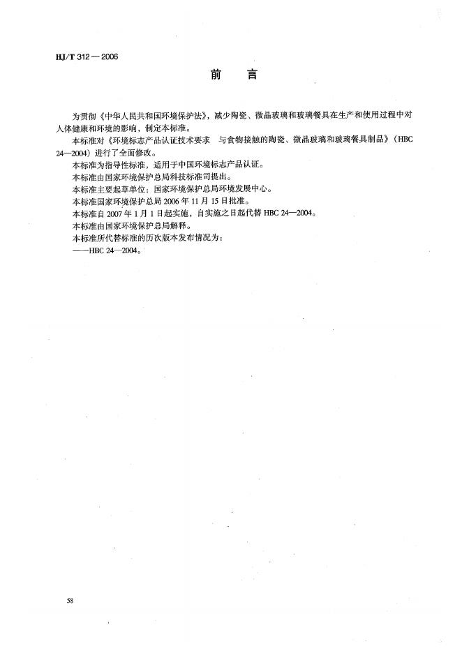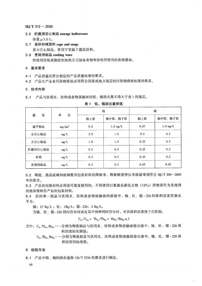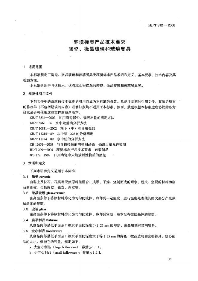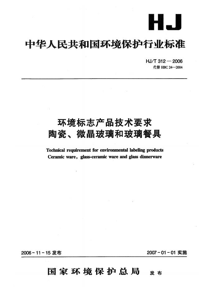 HJ/T 312-2006 环境标志产品技术要求 陶瓷、微晶玻璃和玻璃餐具