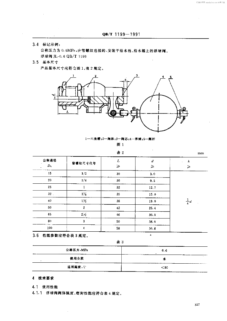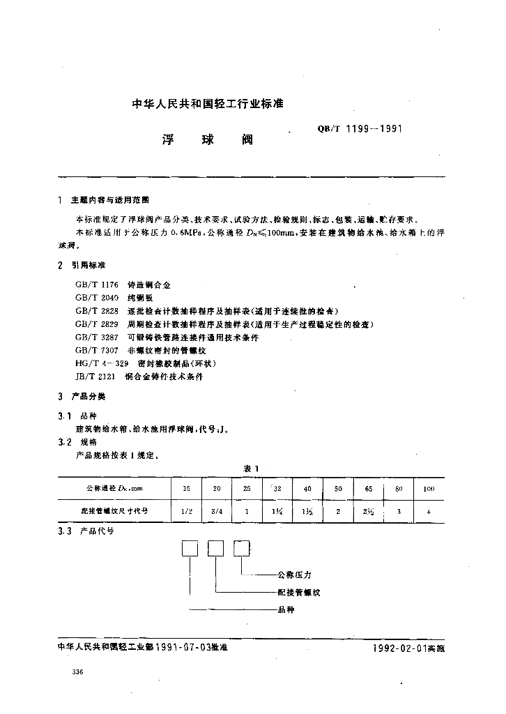 QB/T 1199-1991 浮球阀