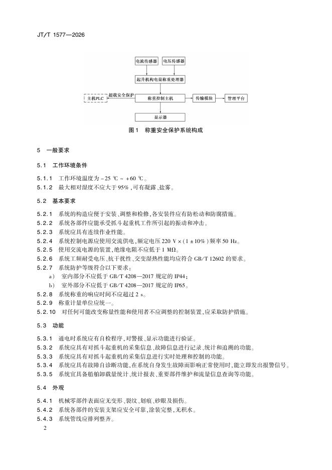 JT/T 1577-2026 抓斗起重机称重安全保护系统技术要求