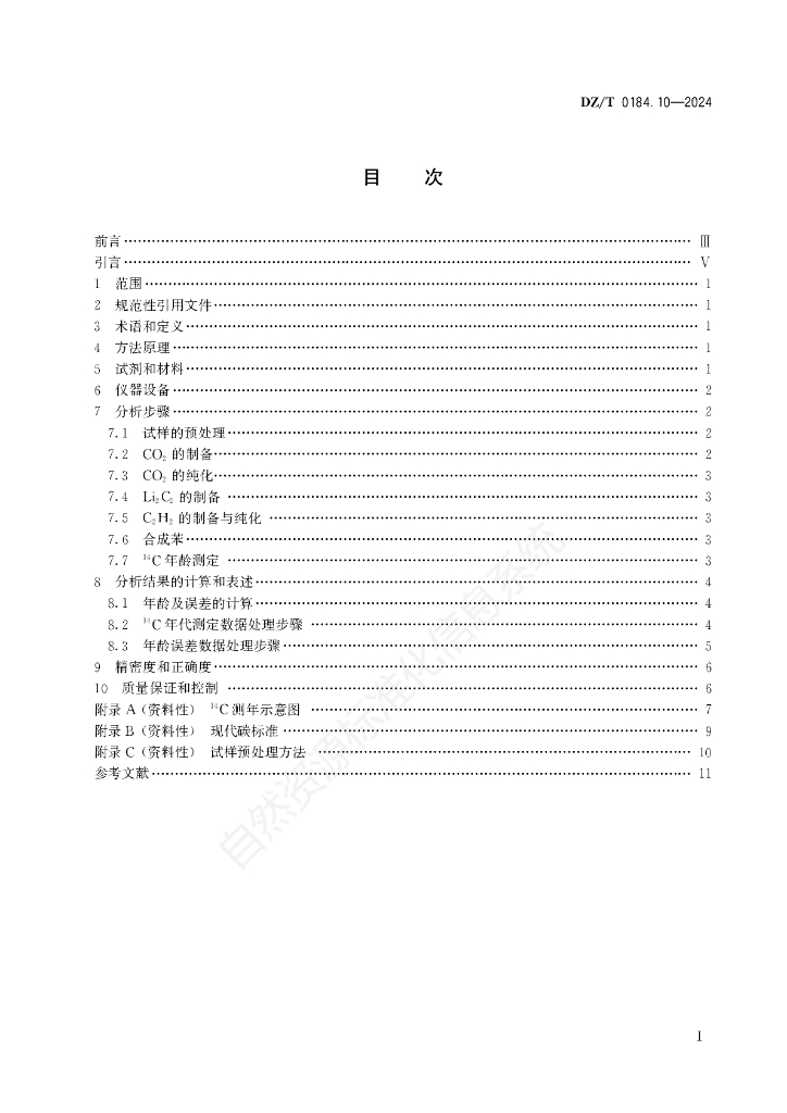 DZ/T 0184.10-2024 地质样品同位素分析方法 第10部分:地质样品 碳-14年龄测定 液闪能谱法