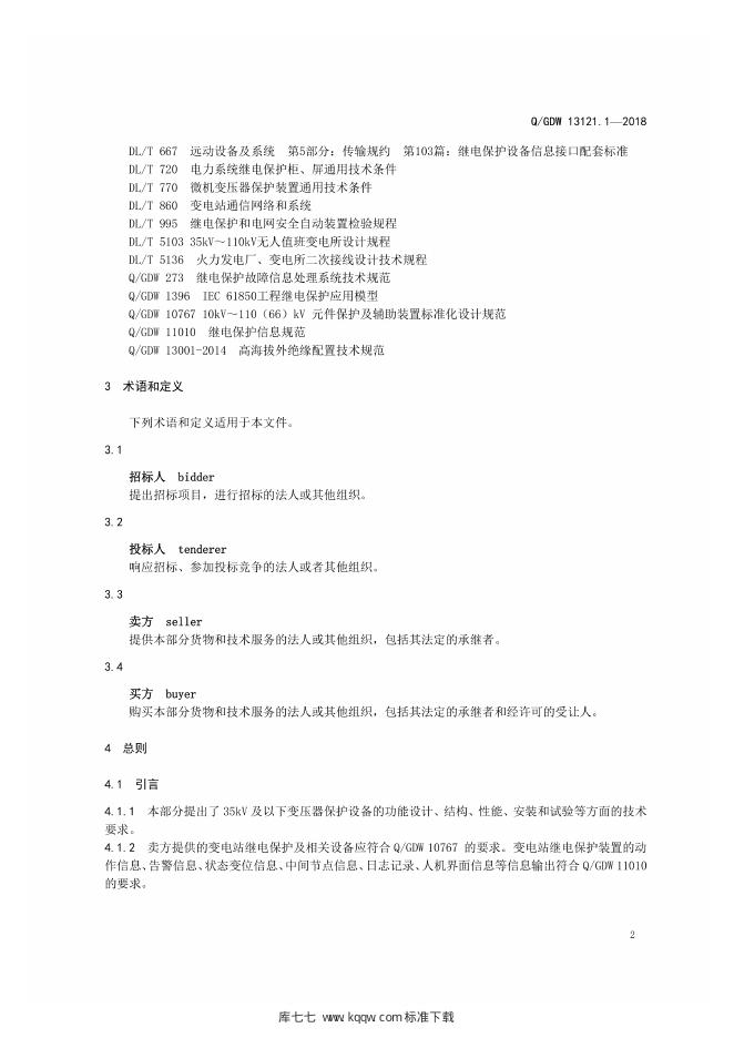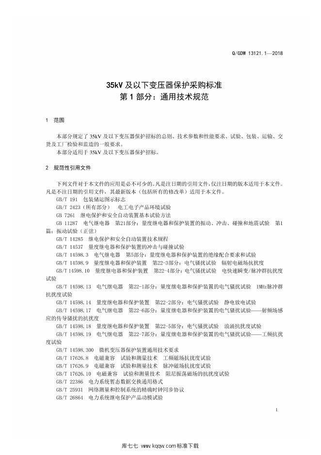 Q/GDW 13121.1-2018 35kV及以下变压器保护采购标准 第1部分:通用技术规范