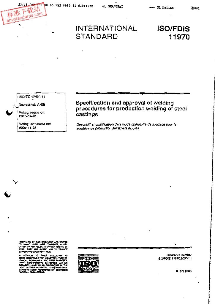ISO 11970-2001 钢铸件制造焊接焊接工艺的规范和验收