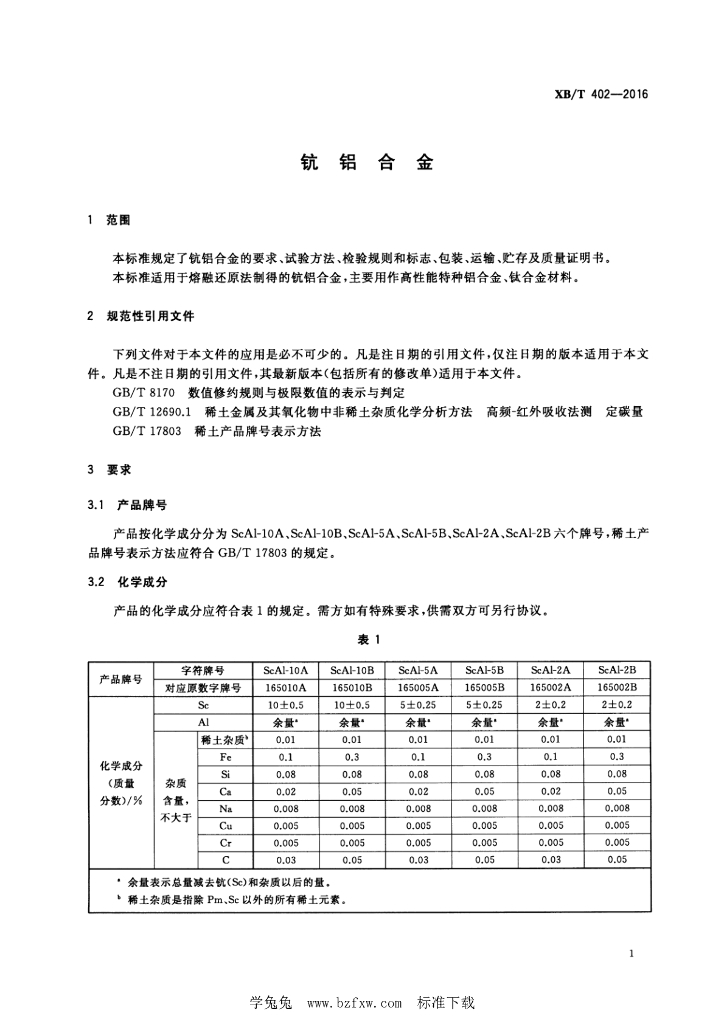 XB/T 402-2016 钪铝合金