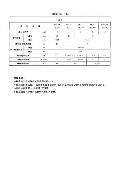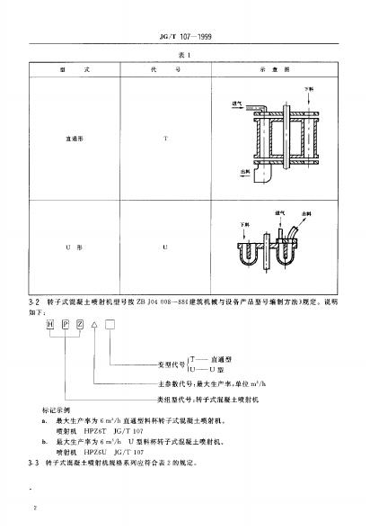 JG/T 107-1999 转子式混凝土喷射机基本参数