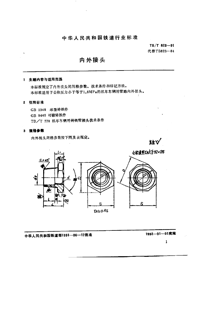 TB/T 823-1991 内外接头