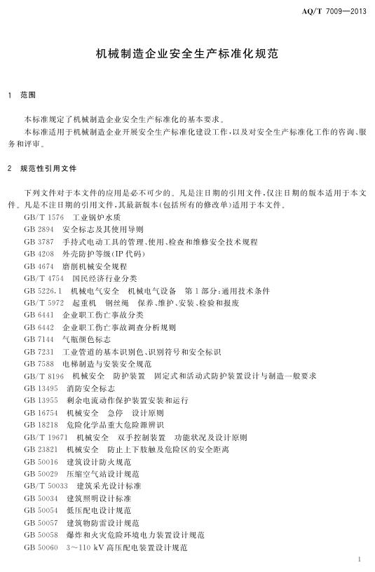 AQ/T 7009-2013 机械制造企业安全生产标准化规范