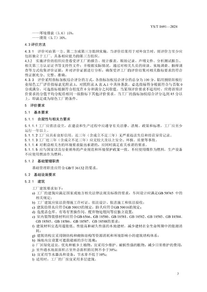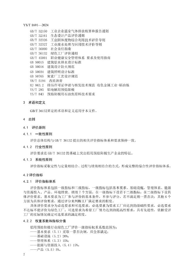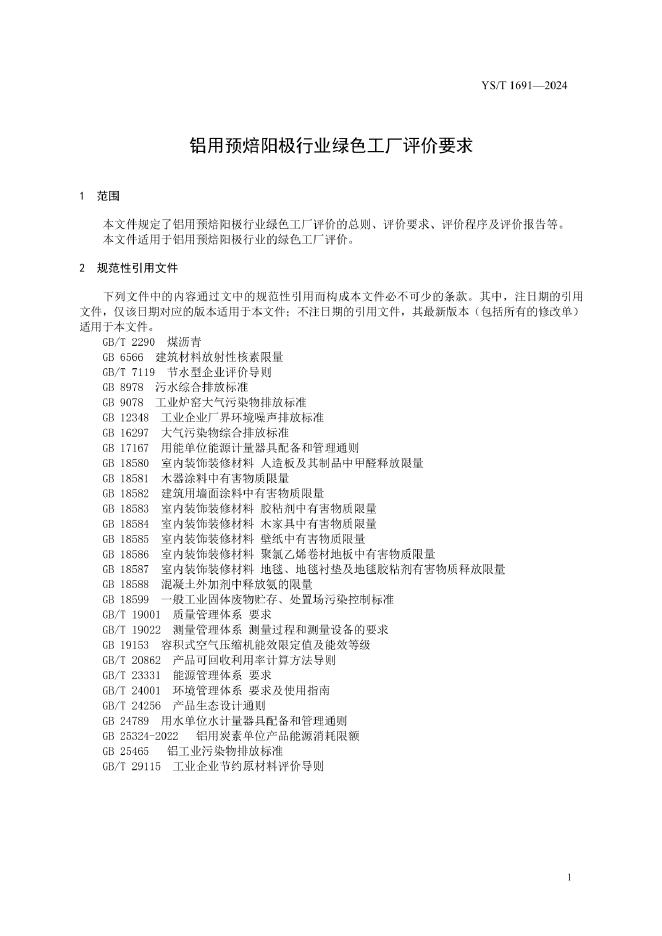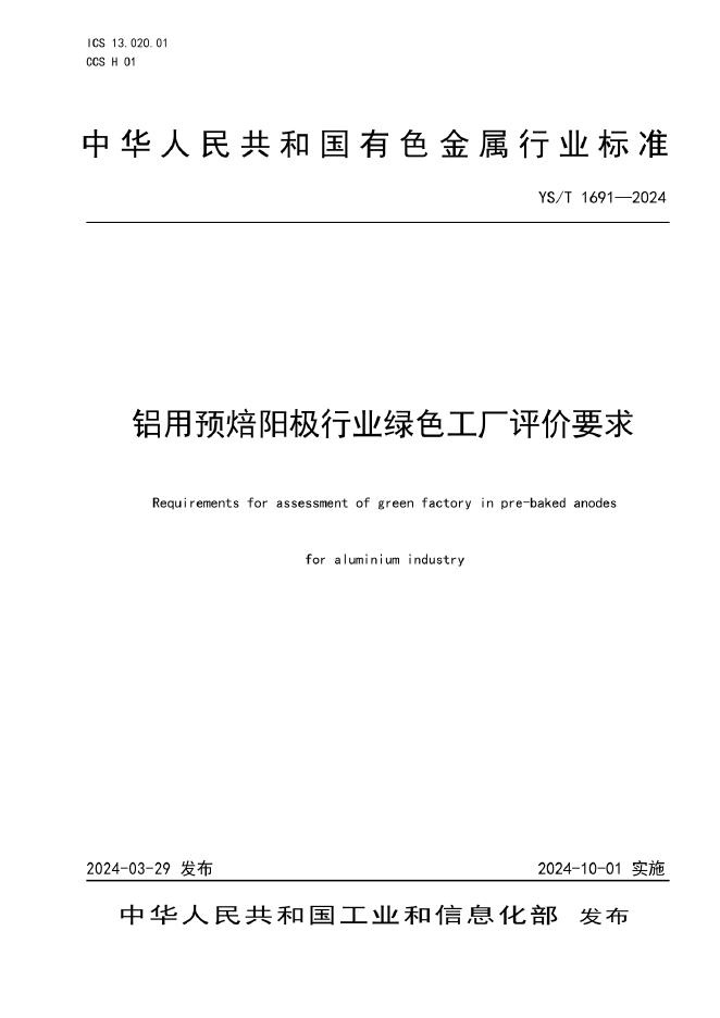 YS/T 1691-2024 铝用预焙阳极行业绿色工厂评价要求