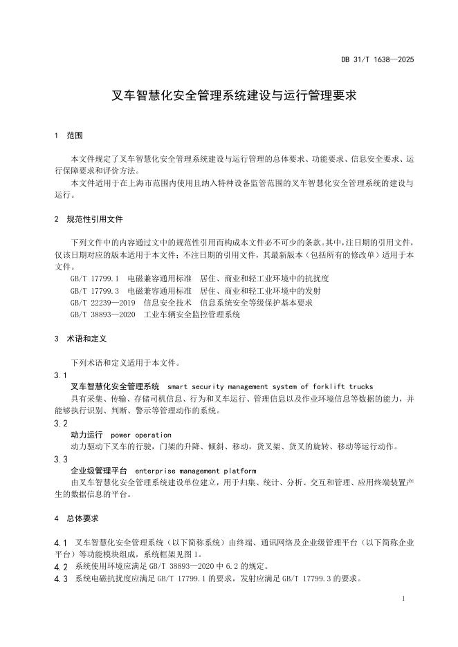 DB31/T 1638-2025 叉车智慧化安全管理系统建设与运行管理要求