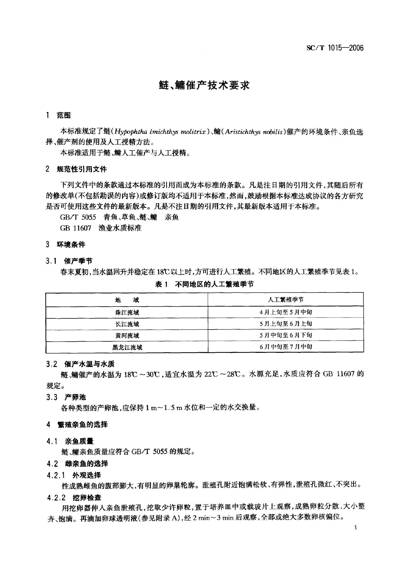 SC/T 1015-2006 鲢、鳙催产技术要求