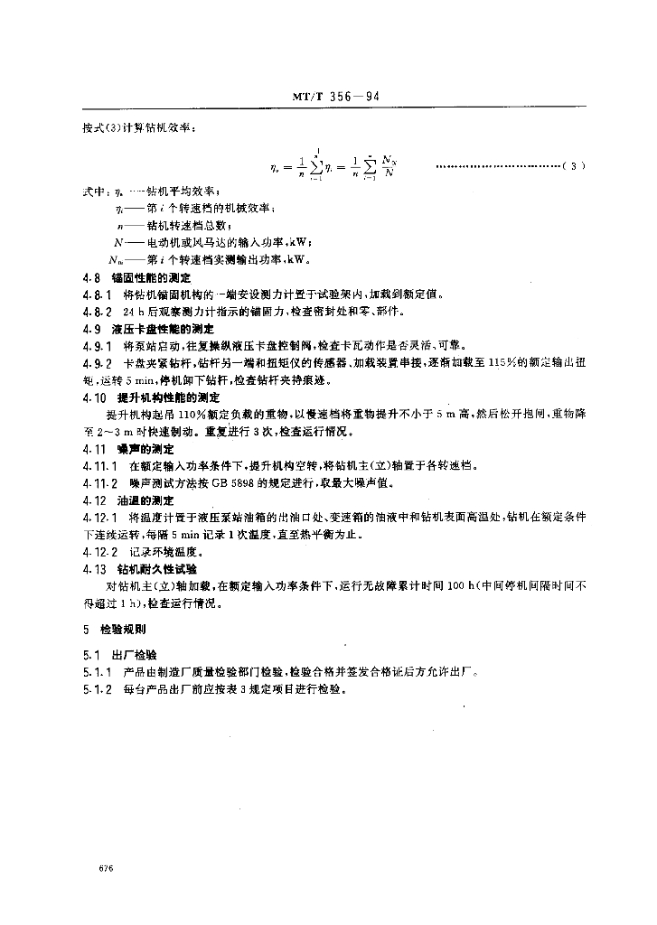 MT/T 356-1994 煤矿井下安全钻机技术条件