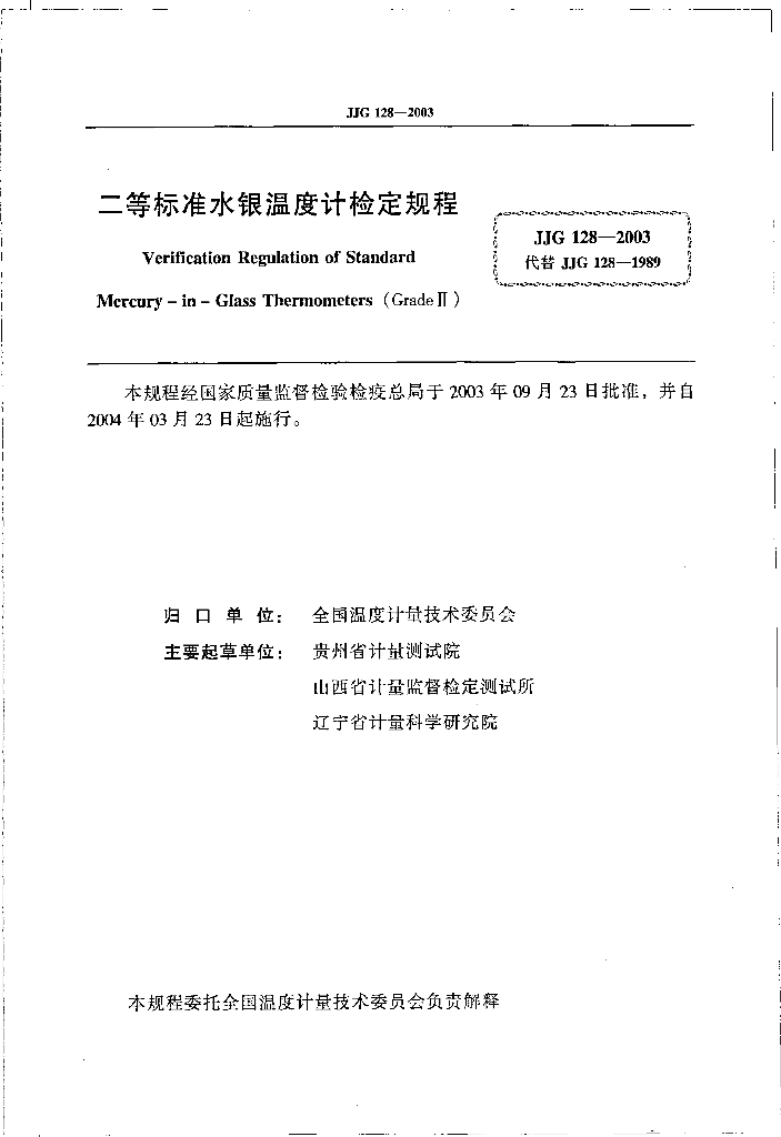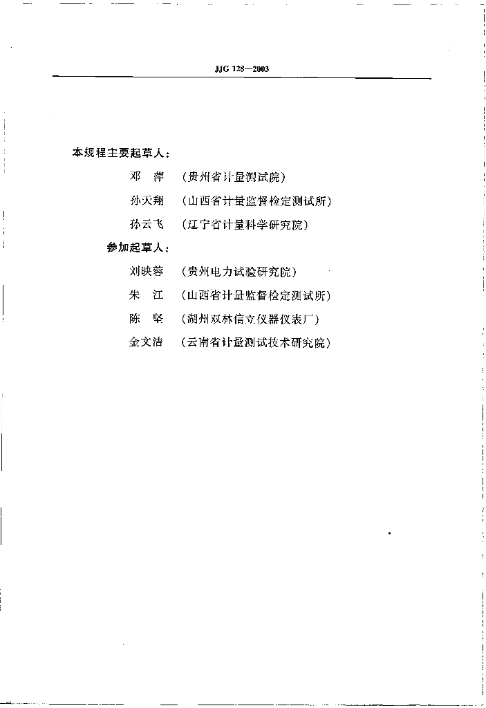 邓萍(贵州省计量测试院)、孙天翔(山西省计量监督检定测试所)、孙云飞(辽宁省计量科学研究院)、刘映蓉(贵州电力试验研究院)、朱江(山西省计量监督检定测试所)、陈坚(湖州双林信立仪器仪表厂)、金文洁(云南省计量测试技术研究院)