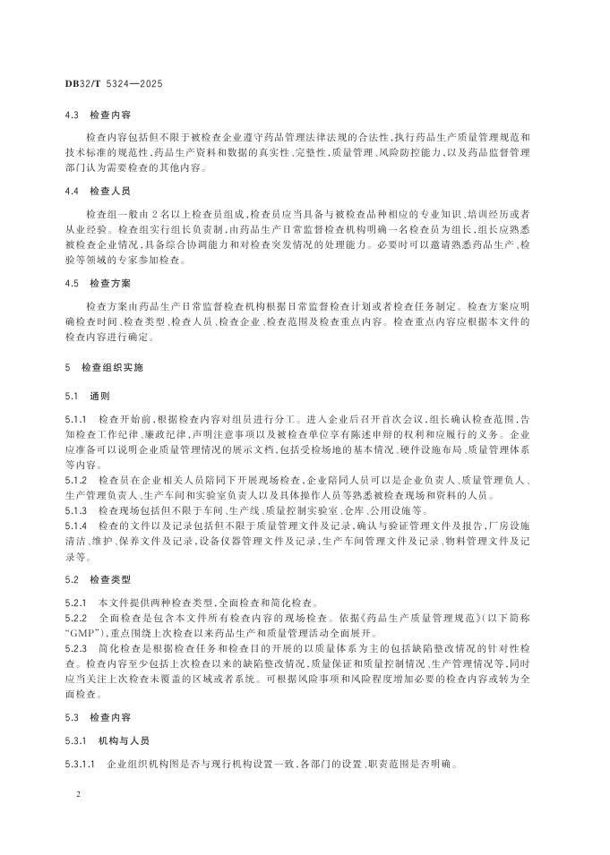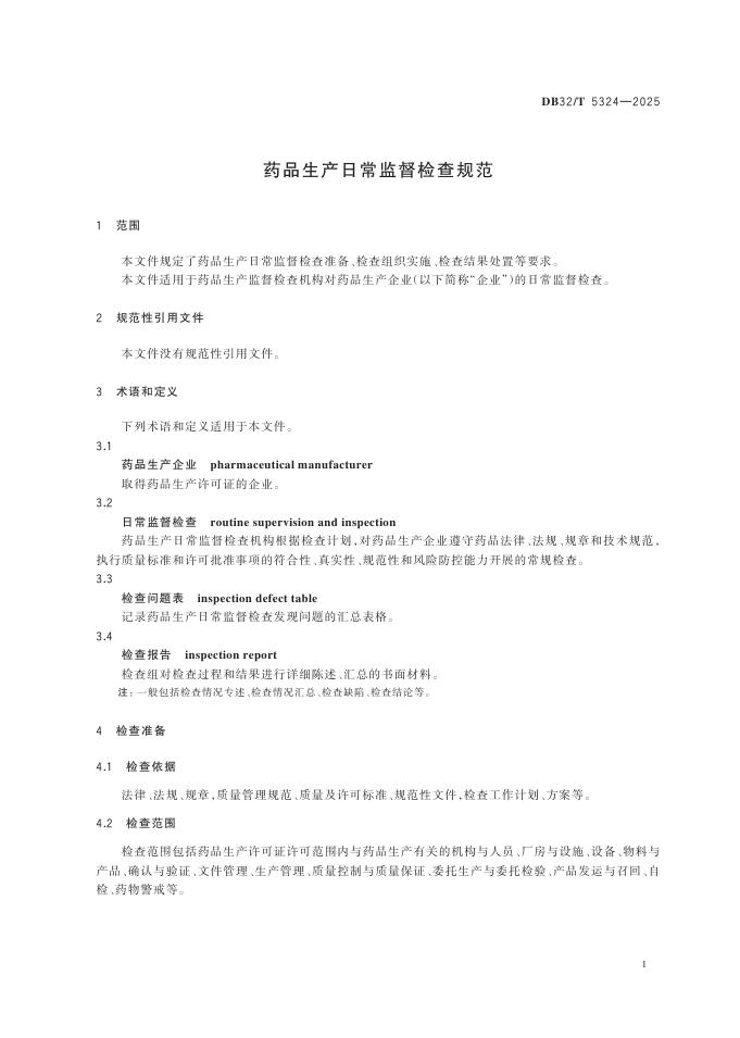 DB32/T 5324-2025 药品生产日常监督检查规范