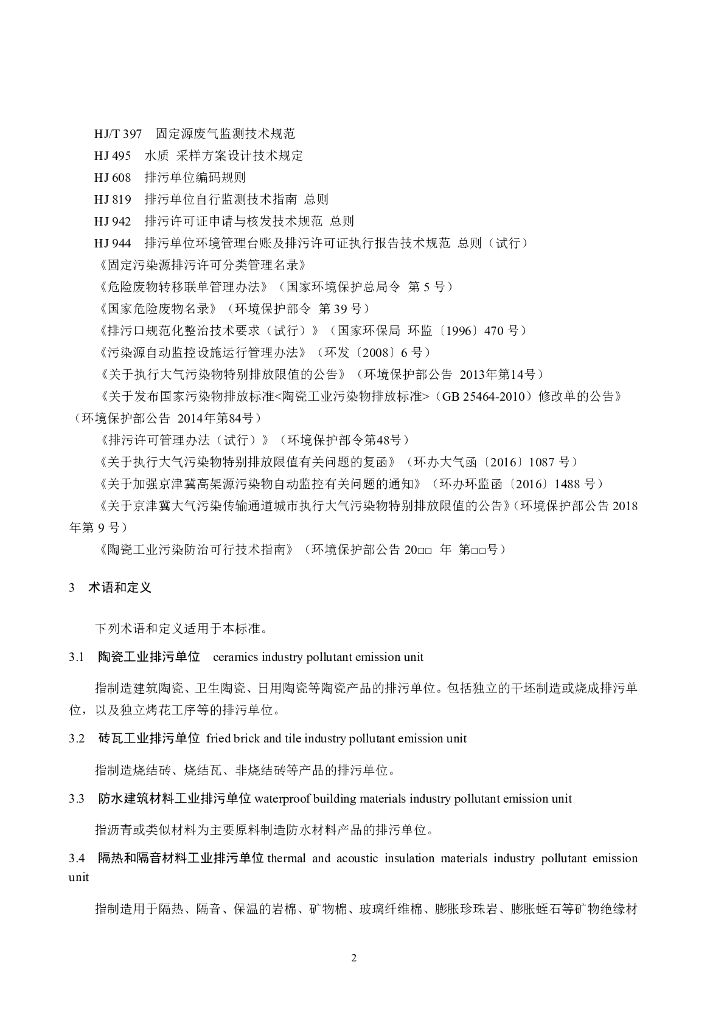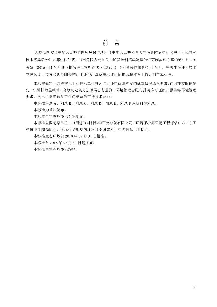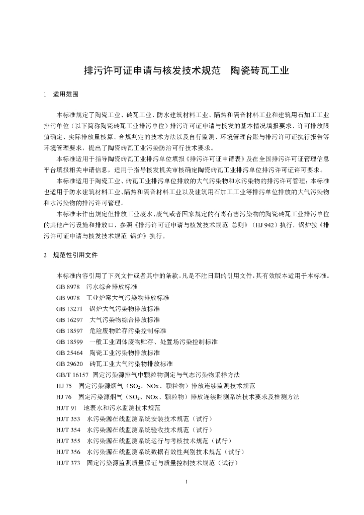 HJ 954-2018 排污许可证申请与核发技术规范陶瓷砖瓦工业