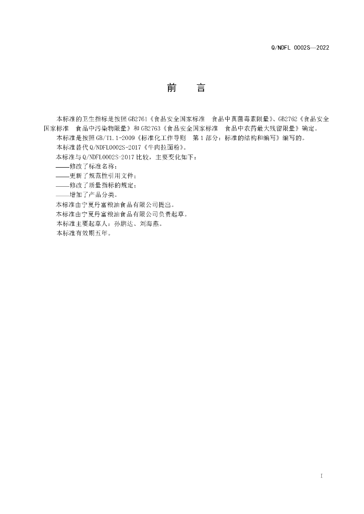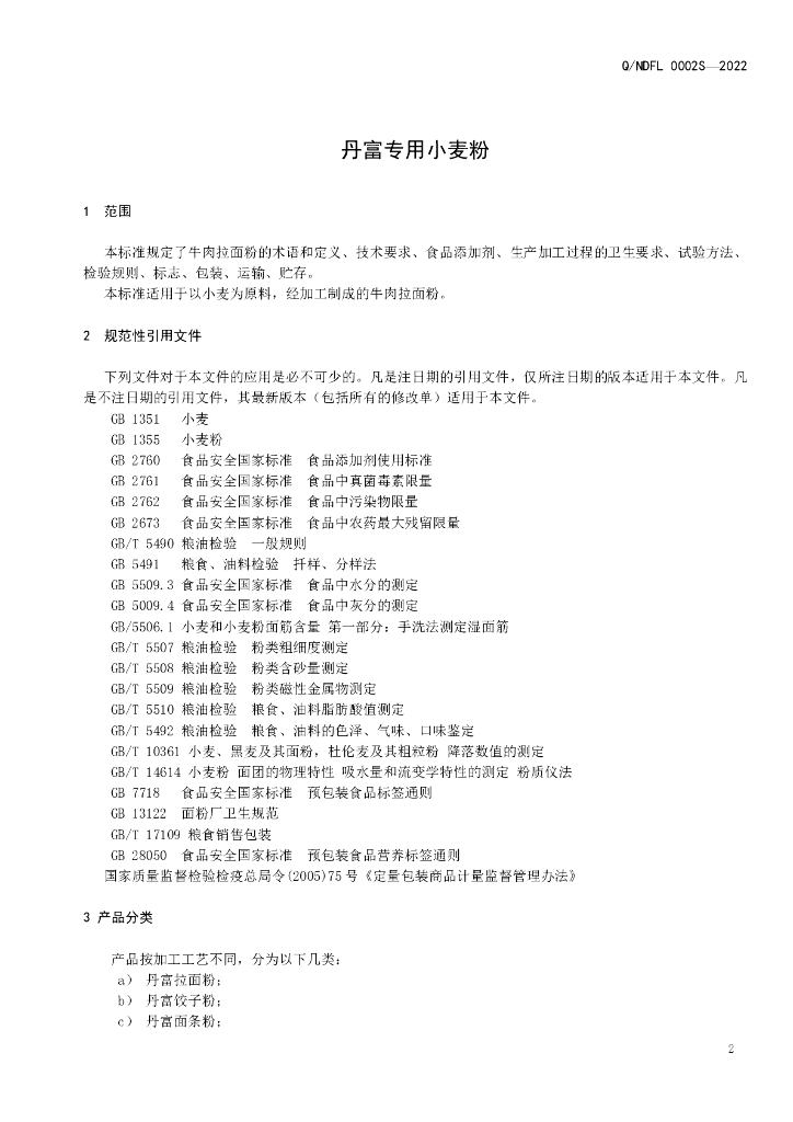 Q/NDFL 0002S-2022 丹富专用小麦粉