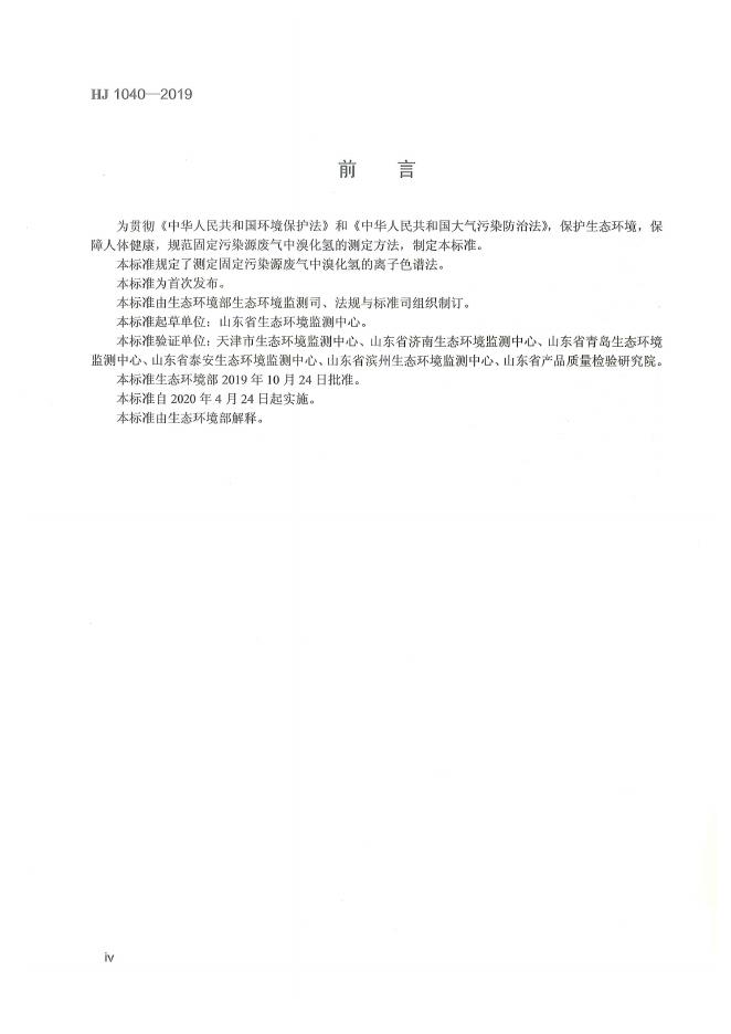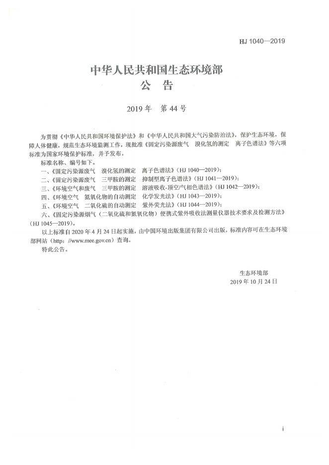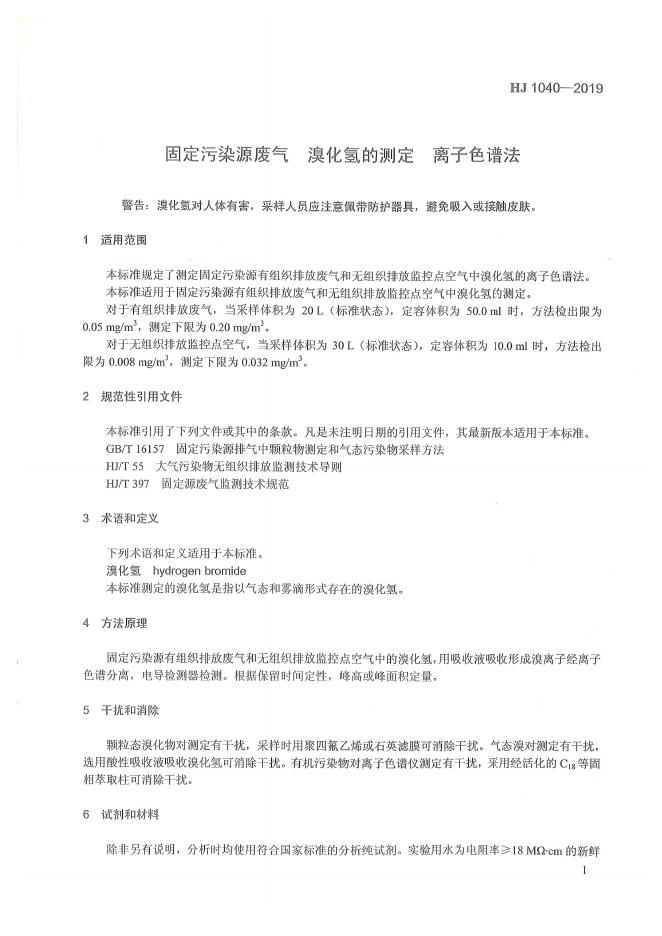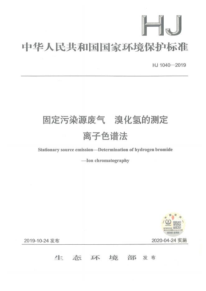 HJ 1040-2019 固定污染源废气 溴化氢的测定 离子色谱法