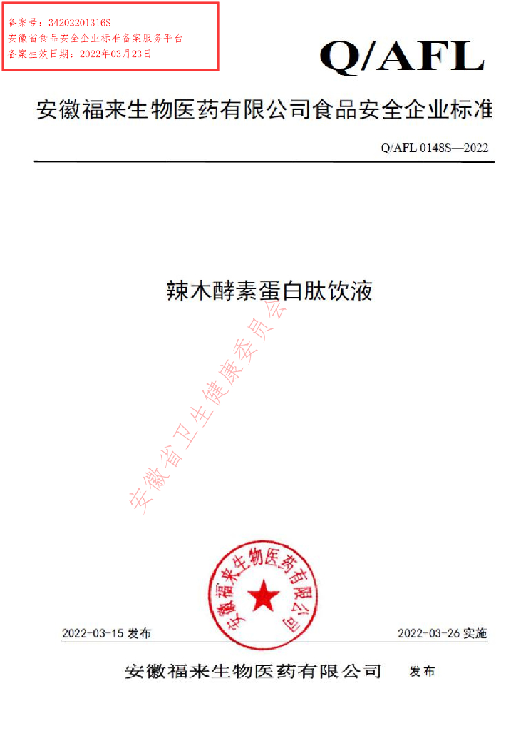 Q/AFL 0148S-2022 辣木酵素蛋白肽饮液