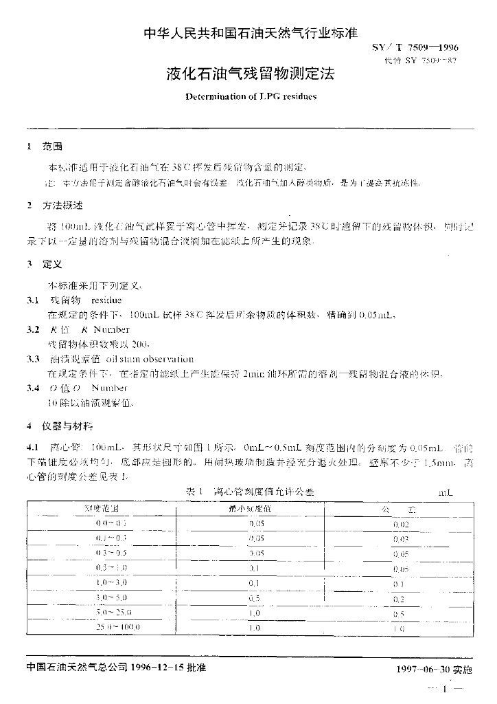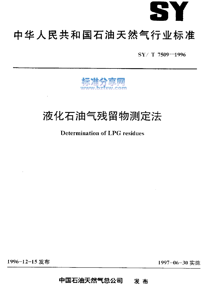 SY/T 7509-1996 液化石油气残留物测定法