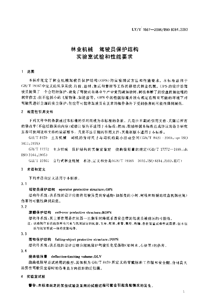 LY/T 1667-2006 林业机械 驾驶员保护结构 实验室试验和性能要求