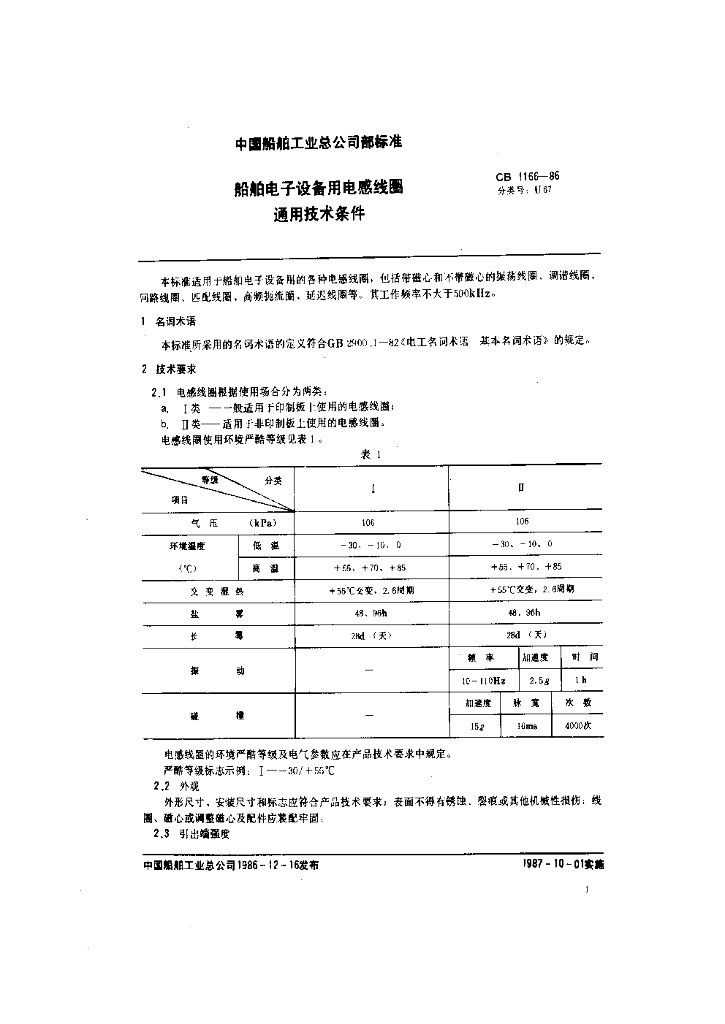 CB 1166-1986 船舶电子设备用电感线圈通用技术条件