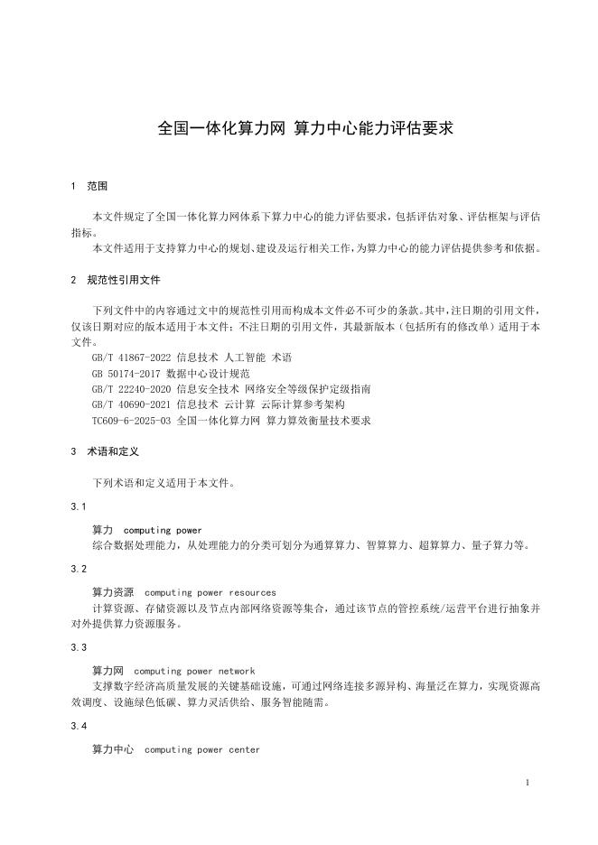 TC609 6-2025-09 全国一体化算力网 算力中心能力评估要求