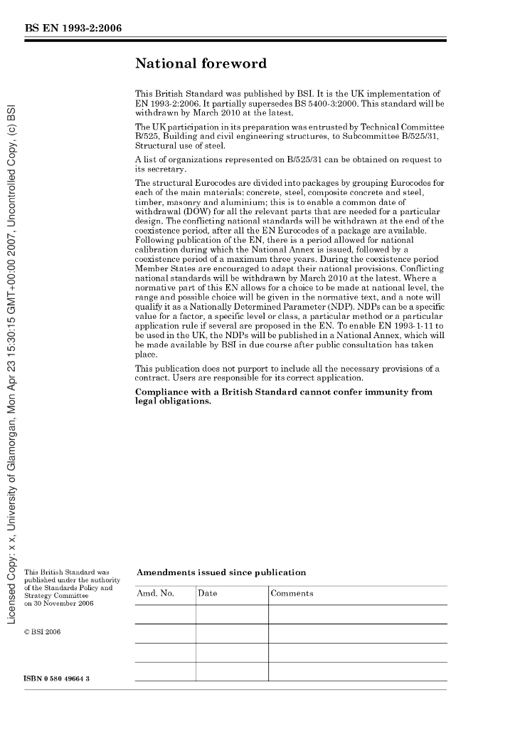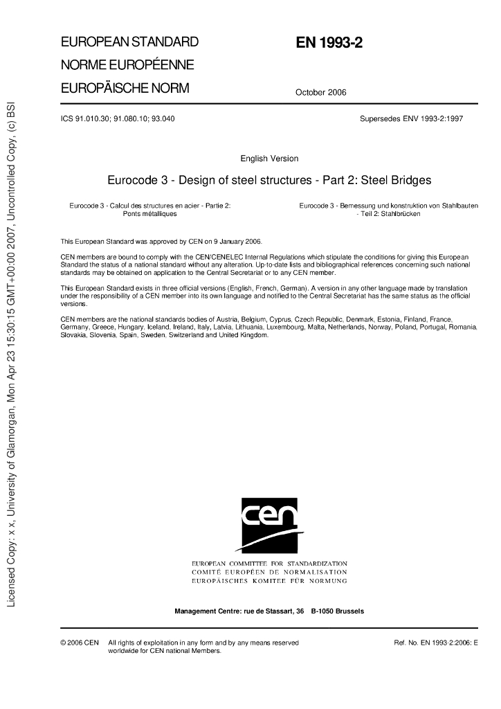 BS EN 1993-2-2006 欧洲法规 3 钢结构的设计 第2部分 钢桥