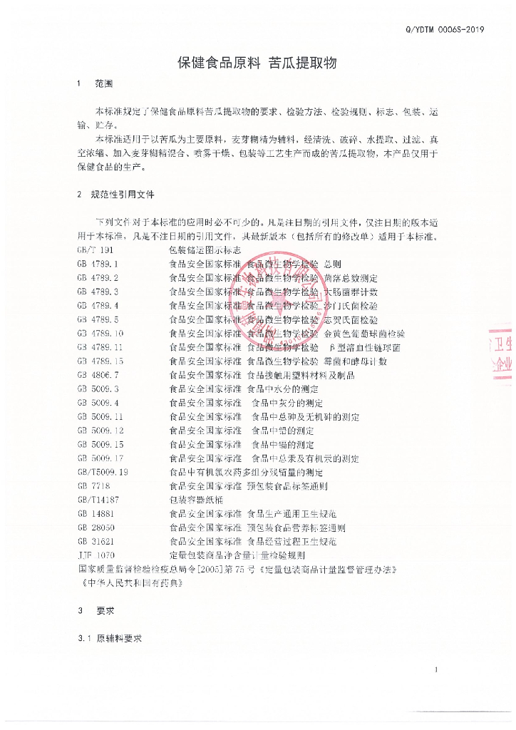 Q/YDTM 0006S-2019 保健食品原料 苦瓜提取物