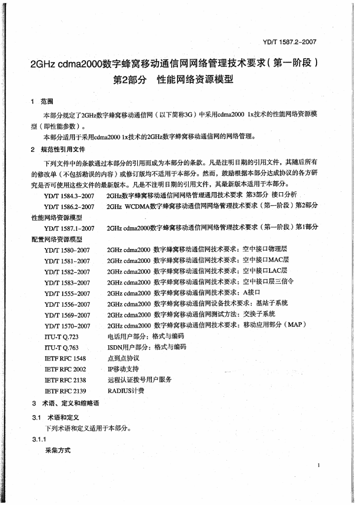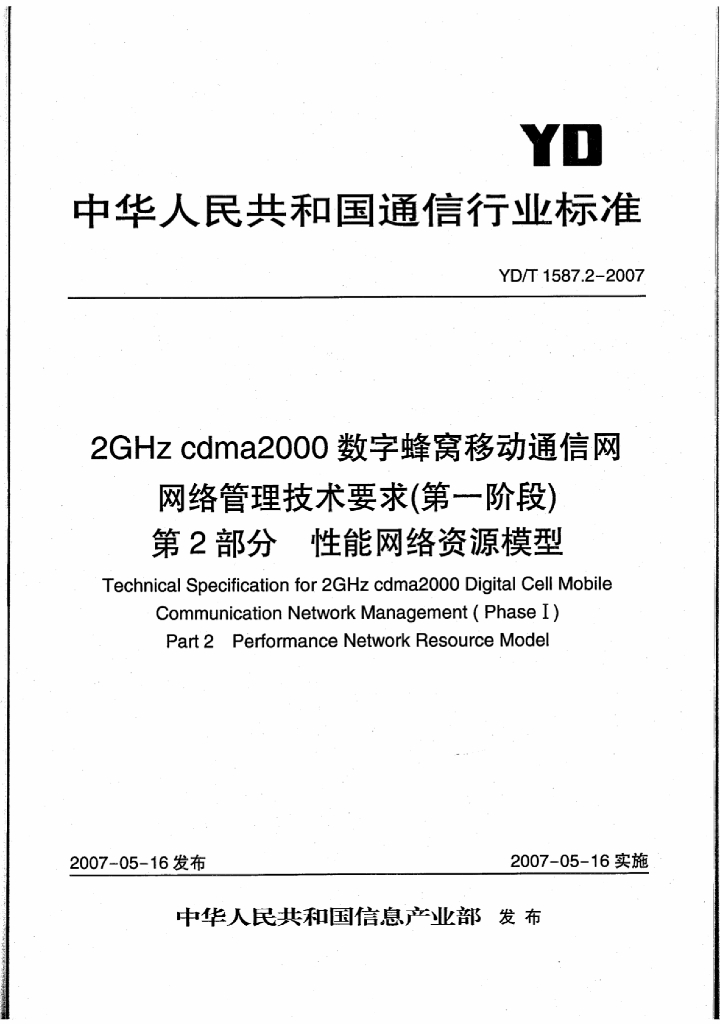 YD/T 1587.2-2007 2GHz cdma2000 数字蜂窝移动通信网网络管理技术要求(第一阶段) 第2部分:性能网络资源模型