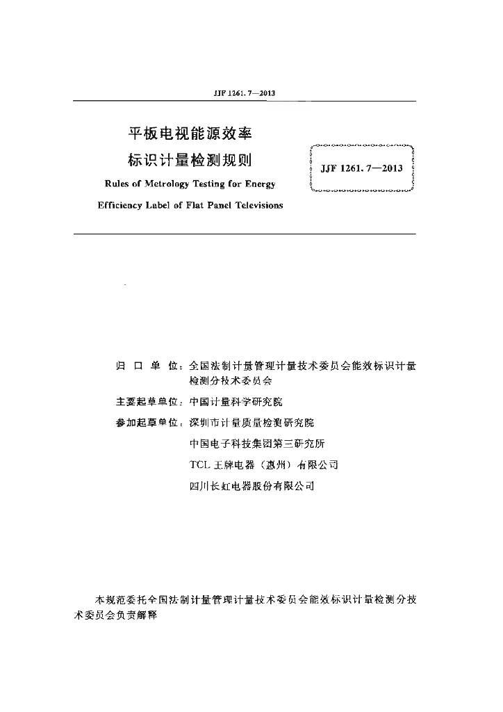 中国计量科学研究院、深圳市计量质量检测研究院、中国电子科技集团第三研究所、TCL王牌电器(惠州)有限公司、四川长虹电器股份有限公司