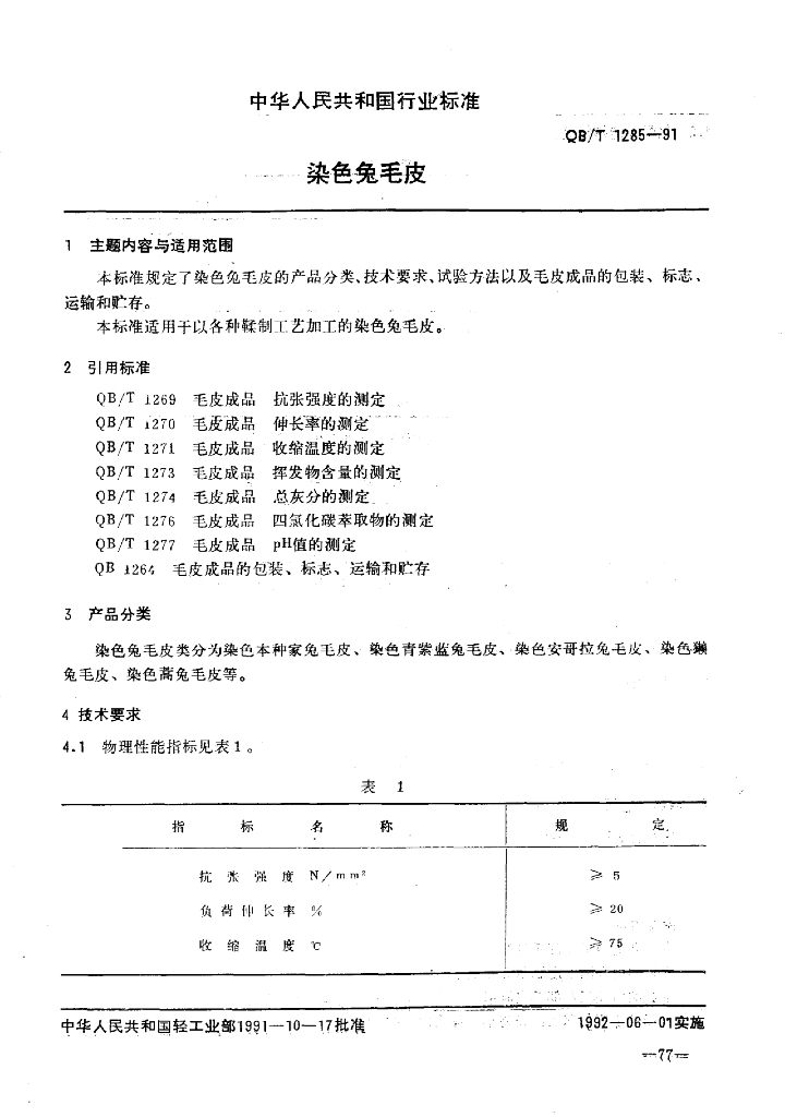 QB/T 1285-1991 染色兔毛皮