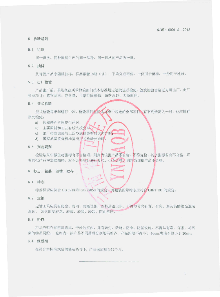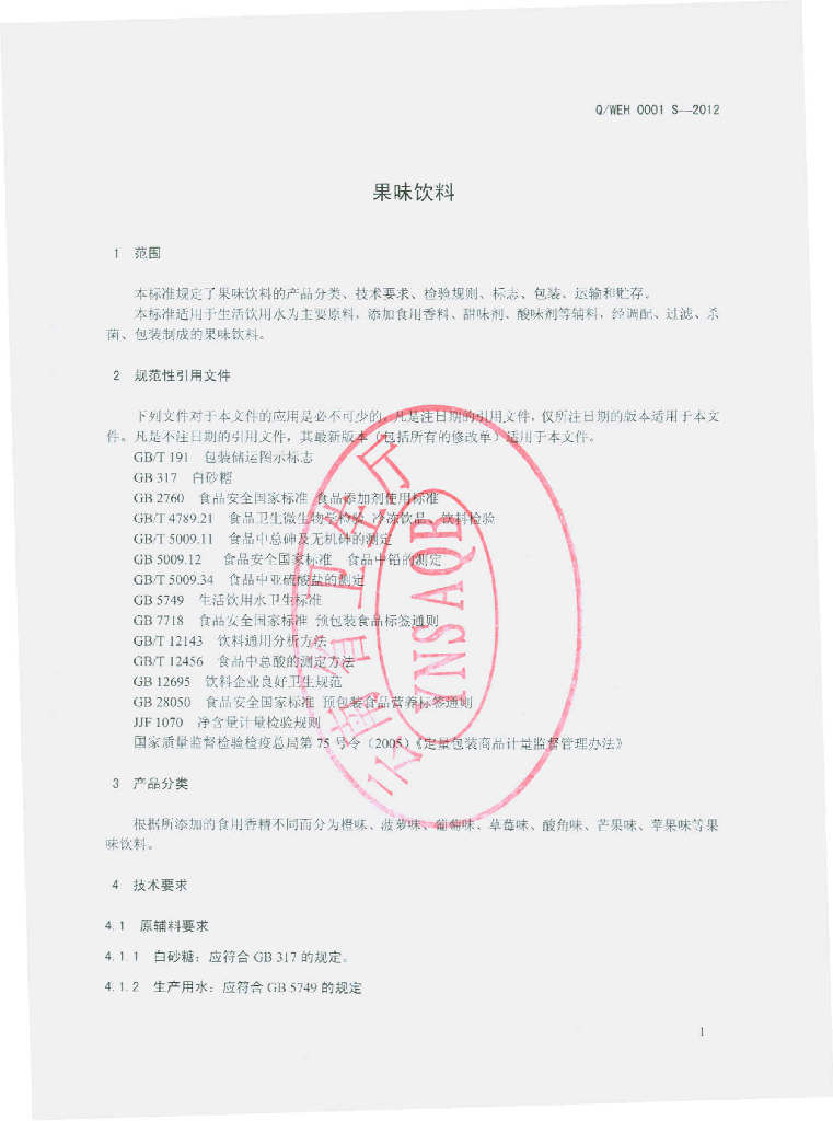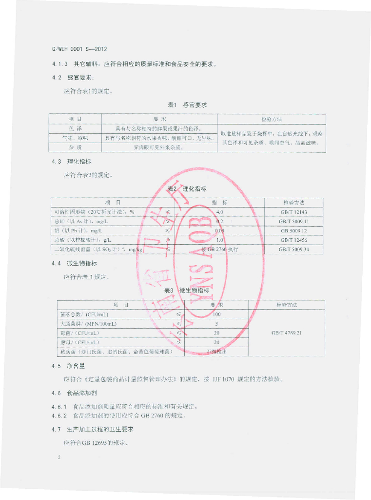 Q/WEH 0001S-2012 果味饮料